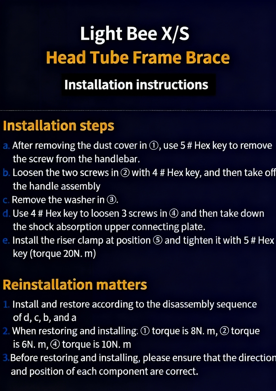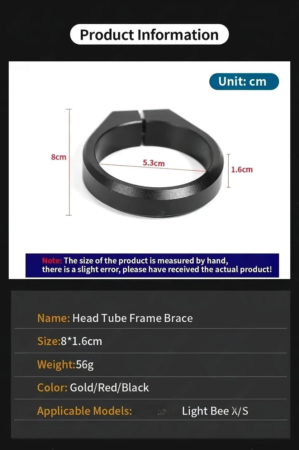 Name: Head Tube Frame Brace Size:8*1.6cm Weight:56g Color: Gold/Red/Black Applicable Models: Light Bee X/S ...