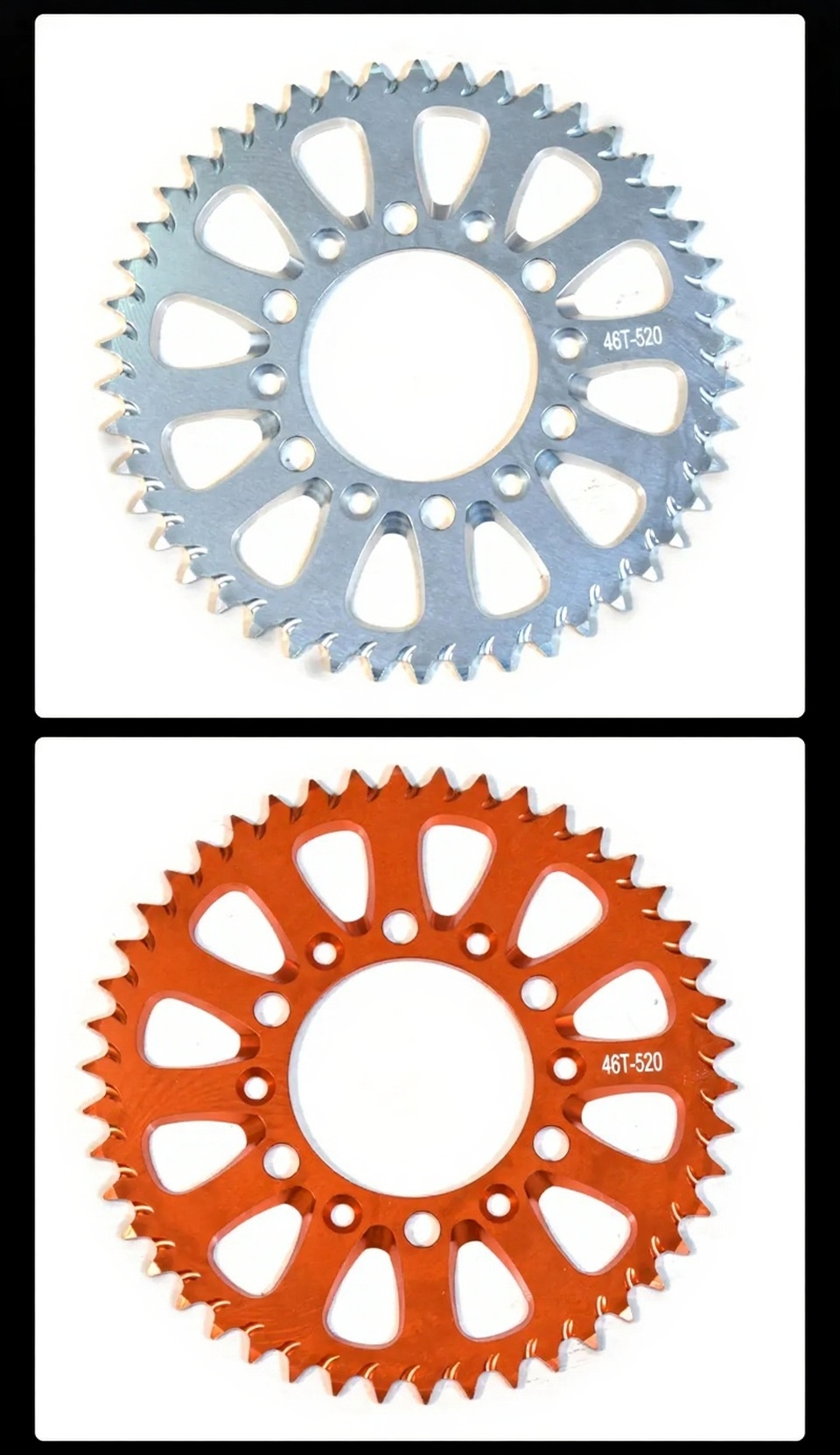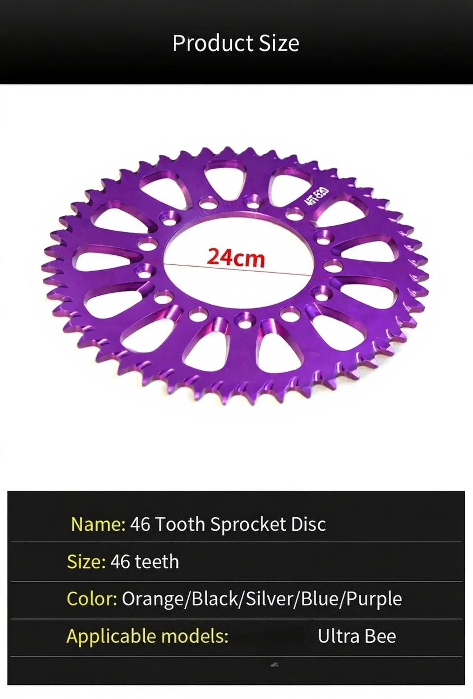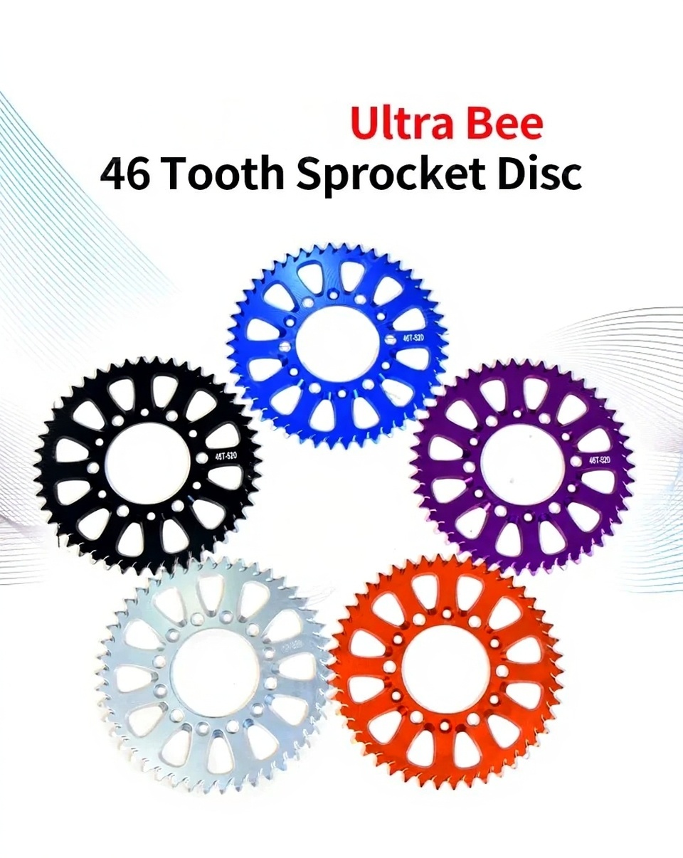 Name: 46 Tooth Sprocket Disc Size: 46 teeth Color: Orange/Black/Silver/Blue/Purple Applicable models: SUR-RON Ultra Bee ...
